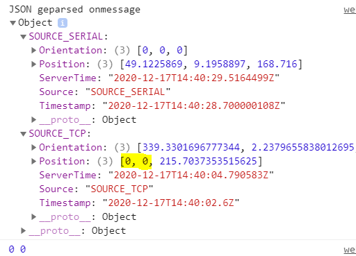 0 Werte werden ignoriert, funktioniert auch alles gut, nur aus irgend einem Grund ist die Position von Smartphone immer 0, so wird das auf jeden Fall in der Konsole im Browser angezeigt, in der IntelliJ Konsole kommen aber die echten Werte.